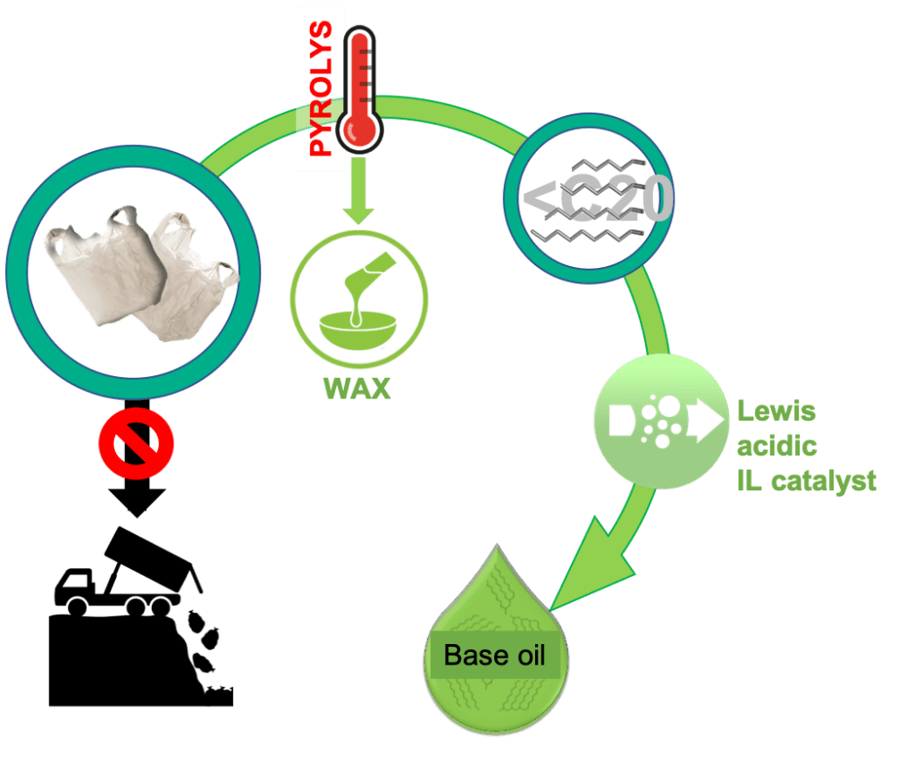 Pyrolysis of plastics yields a mixture of linear 1-olefins and parafins with different chain lenghts. The aim of our project is to convert lighter fraction of these products (<C20) to base oils (the main component of, for example, automotive oils), using our expertise in oligomerisation of olefins using Lewis acidic ionic liquids.