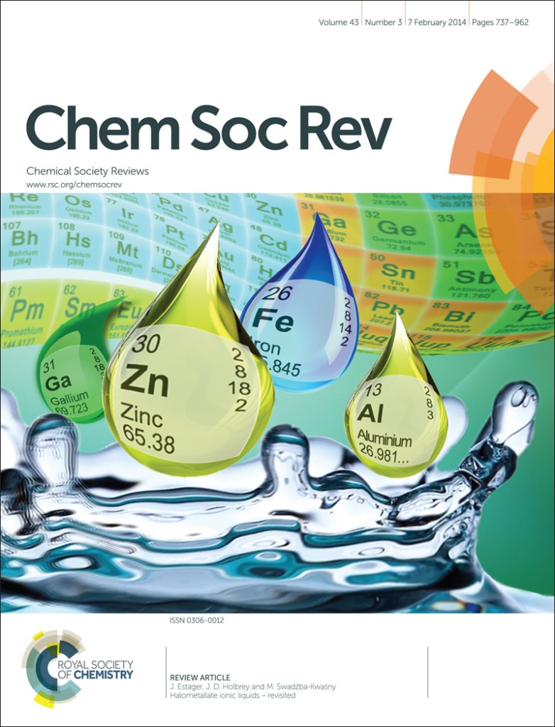J. Mater. Chem. A, 2014, 2, 2616. - J. Estager, J. D. Holbrey and M. Swadźba-Kwaśny, Chlorometallate ionic liquids – revisited,Chem. Soc. Rev., 2014, 43, 847. (cover)